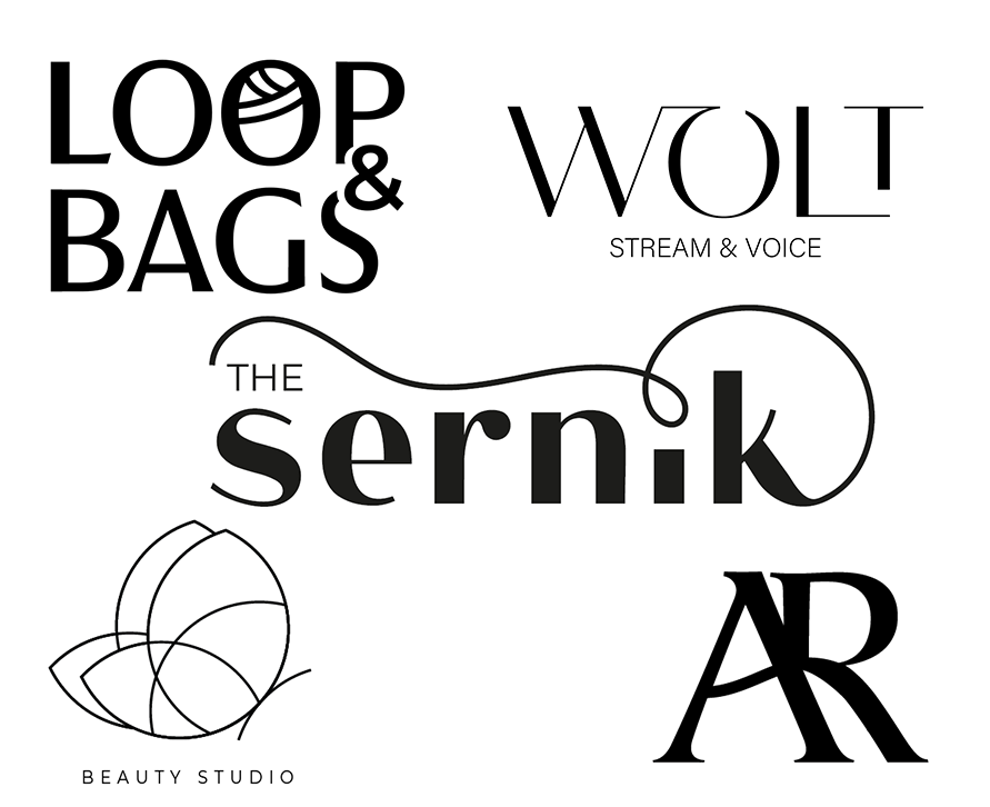 Przejrzyste i eleganckie logotypy dla biznesów online.